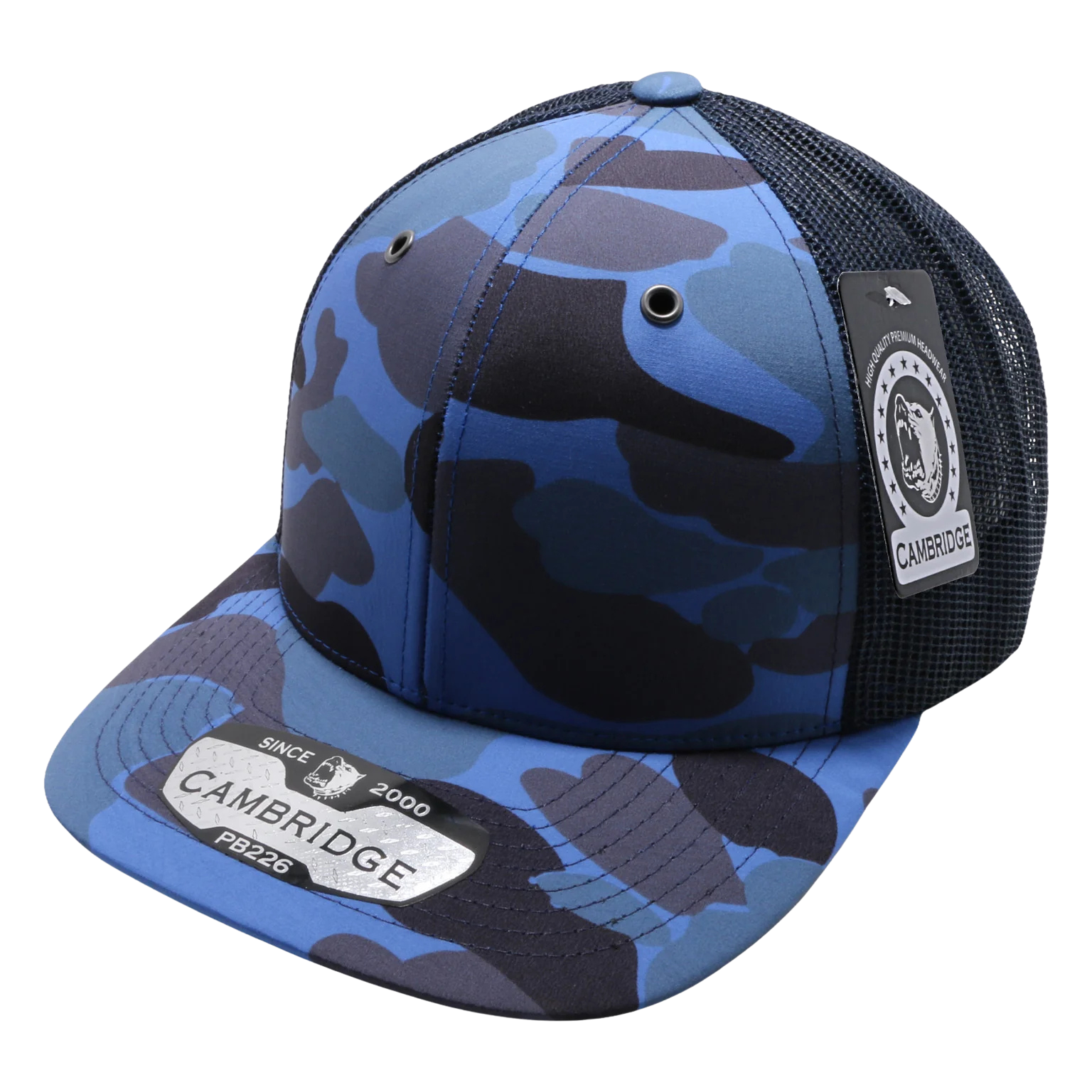 Rugged camo pattern with the same Cambridge fit. Built for outdoorsman, crews, and bold branding.